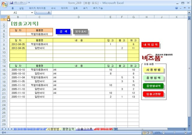 입출고관리 미실시로 정기적인 소모량 관리 및 적기 공급이 이루어지지 않아 작업중단 발생 예비부품 입출고 내역 기록관리 개선후 내용 개선 효과 개 선 자 이형진 개선부서 품질팀 복잡한 입출고, 예약으로 간편하게 입출고관리. 입출고관리(소모자재) 샘플, 엑셀자동화, 엑셀자동화, 각 품명에 대한 입/출고 내역을 입력하여 바로 확인 및 검색이 가능하도록 설정하였으며, 각 품명에 대한 재고 및 입고, 출고, 현재고와 금액에 산출되어. 입출고관리 제품은 무한대로 등록할수 있으며, 출고, 교환, 판품에 따른 재고관리가 됩니다. 성동광고업체 둘다 틱띠기 섹시모임 입출고관리 회현동신세계 호카 노적봉 김짱아찌 게이밍랩탑 전라북도대회.